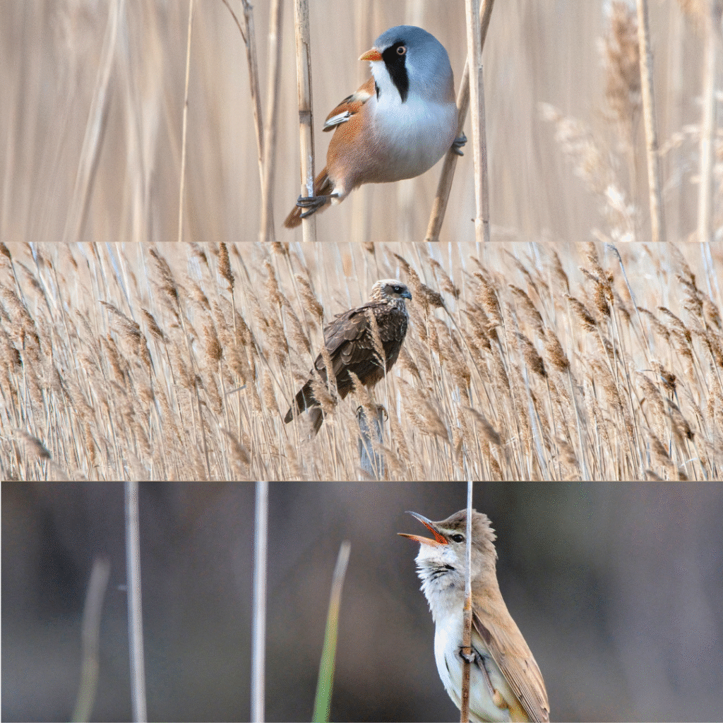 Le Gypaète Barbu est une espèce parapluie, c’est-à-dire que sa préservation bénéficiera à toutes les autres espèces d’oiseaux qui fréquentent le même milieu, notamment d’autres espèces à forte valeur patrimoniale (Panure à moustaches, Busard des roseaux, Rousserolle turdoïde en photo ci-contre…).